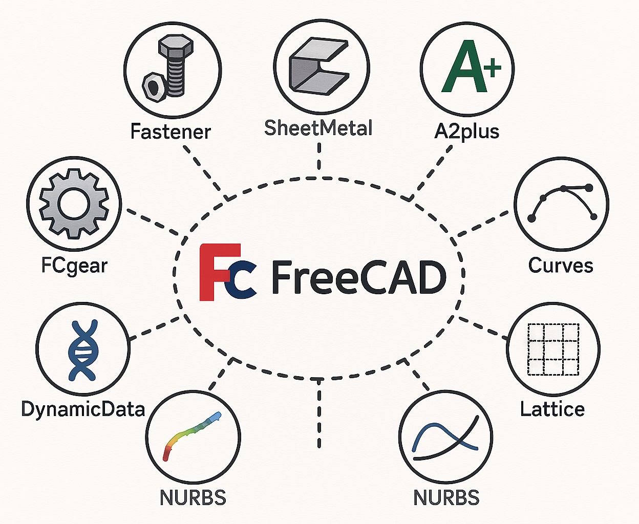 - FreeCAD. (Addon Manager sekarang self-updating dan menjadi jalur standar untuk instalasi).
