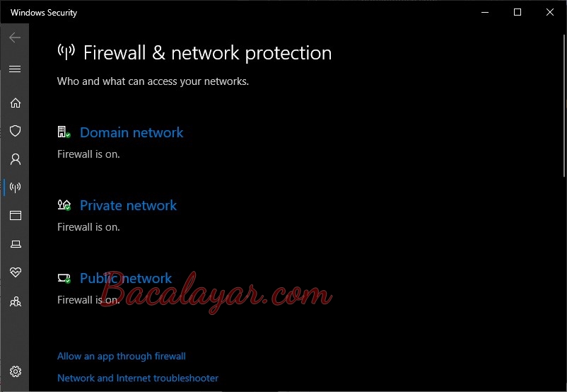 • Di bawah jaringan, pilih “Allow an app thorugh firewall”
