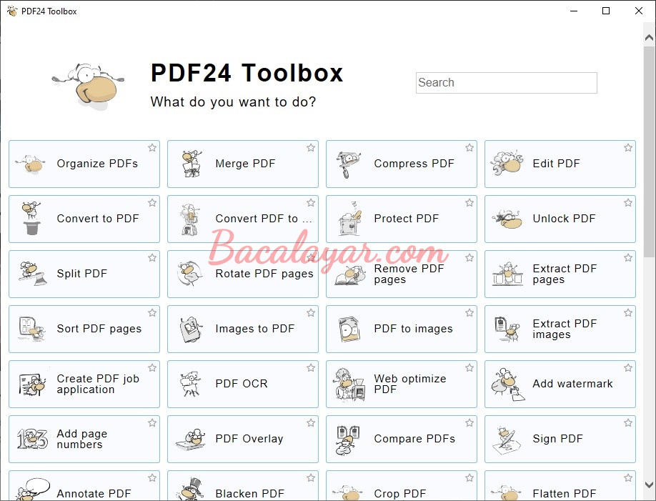 Banyak yang belum tahu pdf24 adalah software dengan kemampuan yang mumpuni hampir seperti software berbayar lainnya. Kemampuan dalam mengolah file PDF dengan alur kerja yang mudah dan sederhana namun powerfull. Selain itu, software ini memiliki moto “100% free, 100% free of spyware”. Itu artinya mereka tidak melakukan apapun terhadap pengguna software pdf24. Semoga itu benar adanya.