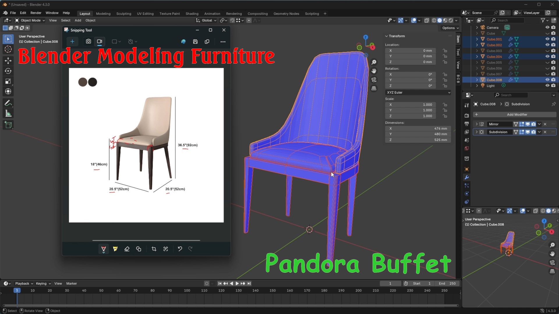 Proses pembuatan model 3 dimensi Litfad Dining Chair. Kamu bisa melihat link dari referensi model pada deskripsi di halaman youtube. Dimana kamu bisa menemukan lebih banyak informasi seperti ukuran dan image yang lebih detail.
