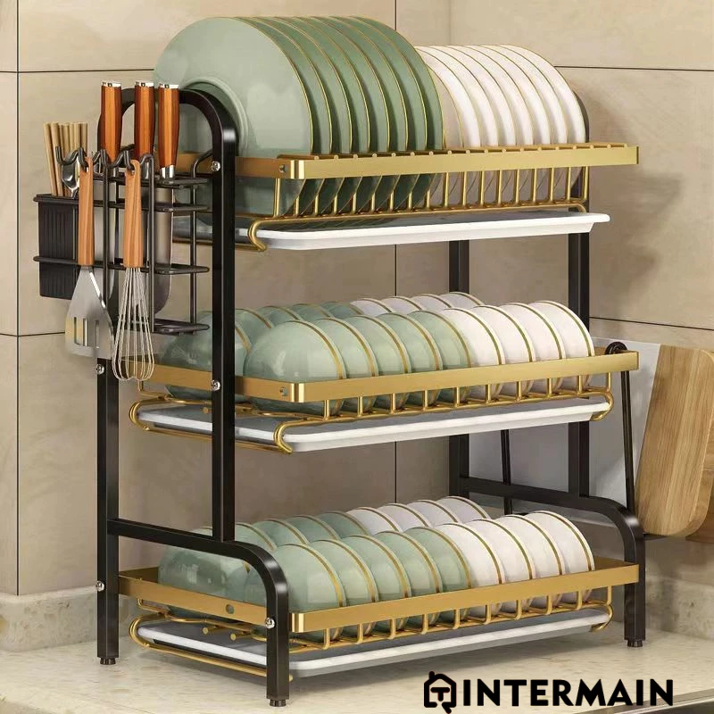 Saya Mau Rak Piring Stainless Steel Hitam Emas Multifungsi Mewah